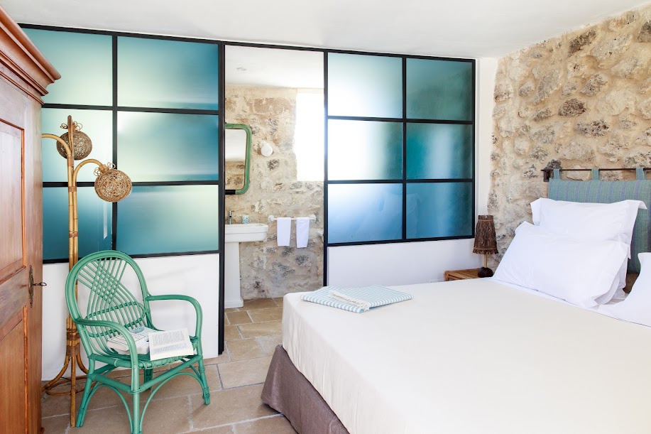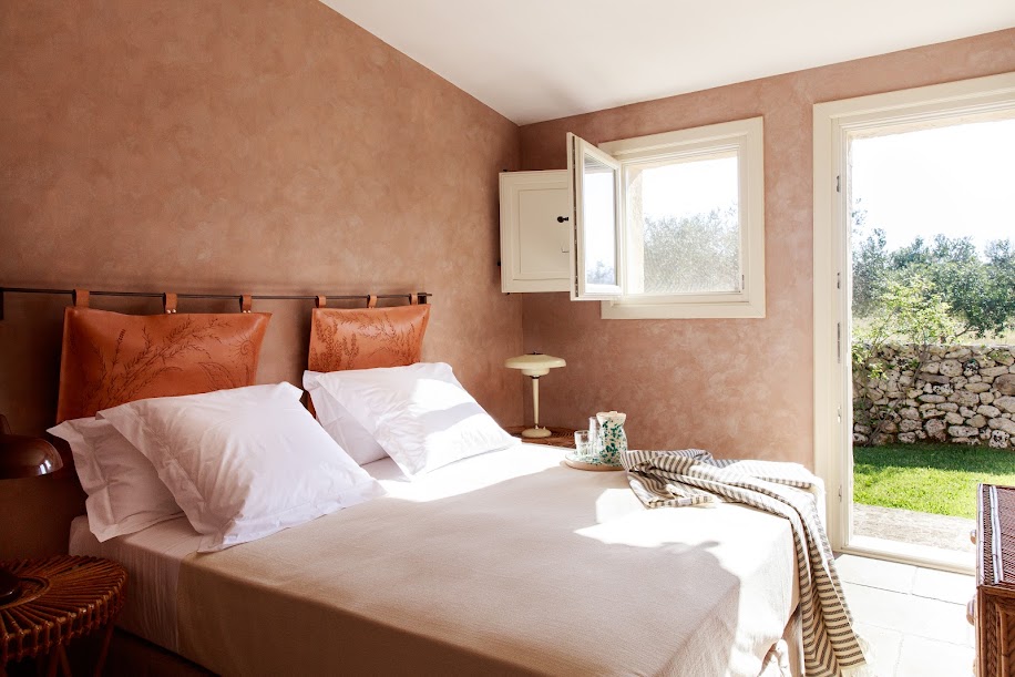 Climb to the rooftop terrace for sweeping views and a sensory experience of colors and scents, especially magical at sunrise or sunset. It’s a moment not to miss: just you, the light, and the land. Peace is found among the dry-stone walls and ancient olive trees that grace the property.