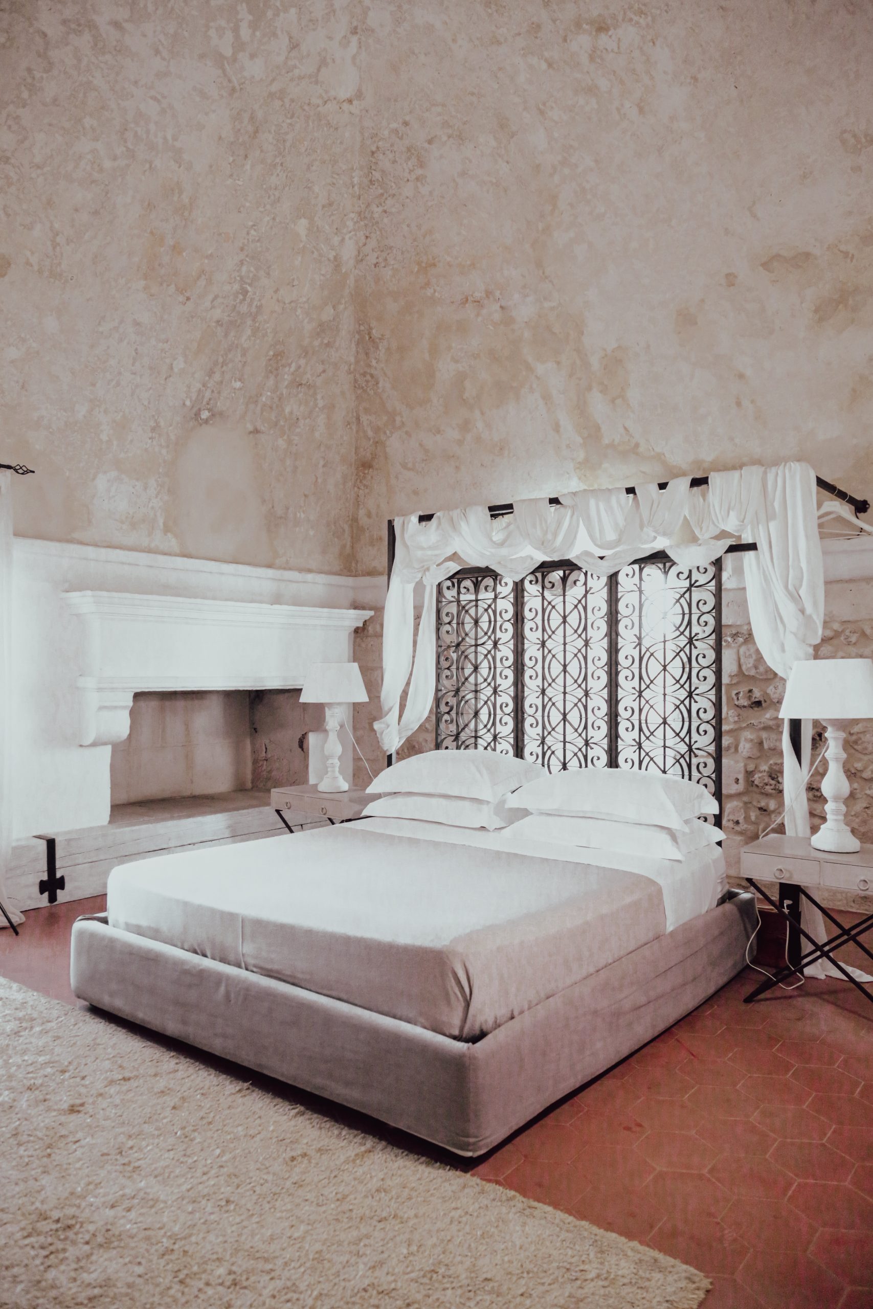 Nestled along the ancient Via del Carro, once the vital route connecting the rural farmsteads of Salento from north to south, Masseria Del Carro is a 14th-century fortified farmhouse steeped in history. A timeless haven for travelers and pilgrims, it offered rest and refuge within its sturdy walls, flanked by two defensive towers. One of these towers now houses the Master Suite, adorned with a remarkable fresco dating back to the 1600s, a testament to the Masseria’s rich heritage.